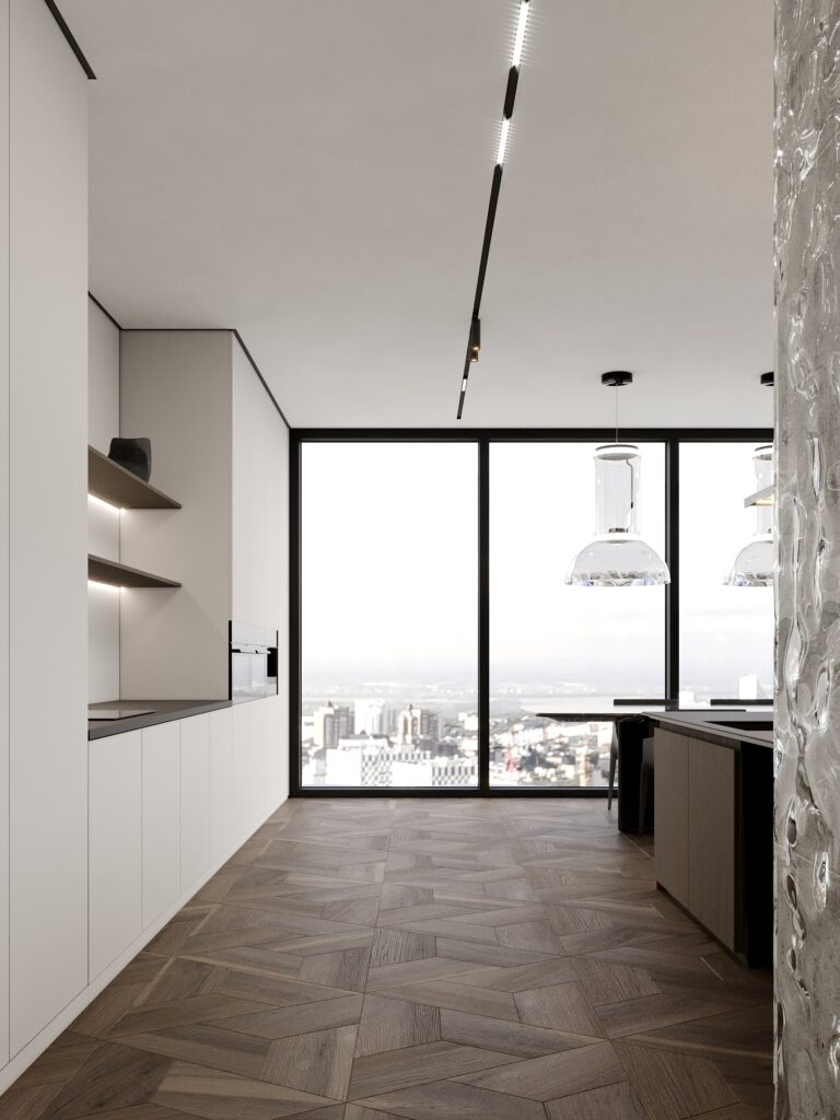 Apartament w Warszawa Trade Tower to połączenie nowoczesnej elegancji i artystycznego charakteru wnętrz. Panoramiczne przeszklenia otwierają przestrzeń na tętniące życiem centrum stolicy, a unikatowe detale aranżacyjne sprawiają, że wnętrze zachwyca zarówno funkcjonalnością, jak i estetyką.