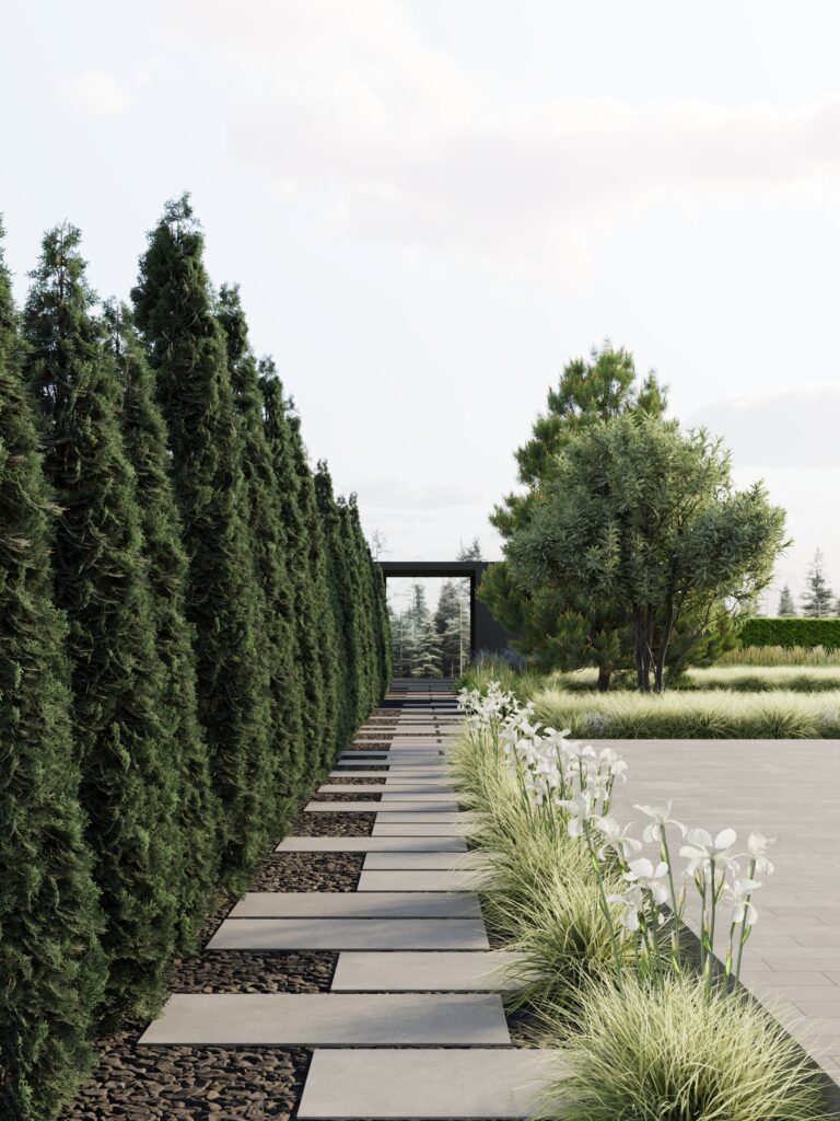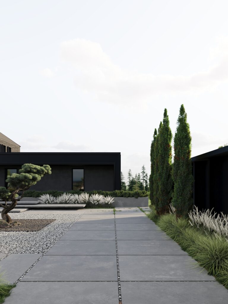 Projekt ogrodu oraz elewacji to hołd dla nowoczesnego minimalizmu, w którym kluczową rolę odgrywają proporcje, faktury i detale. Ogród nie konkuruje z architekturą – przeciwnie, podkreśla ją i dopełnia. To przestrzeń dla osób ceniących prostotę, porządek, a zarazem wyrafinowaną estetykę i bliskość natury w nowoczesnym wydaniu.